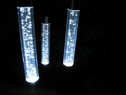The Bubble Lights are completely different. The light shines upwards into the acrylic wand, which then magnifies it by carrying it along its length. The effect is surprisingly stylish. They are particularly good markers, the downside being that, because the light points upwards, they are not so effective at illuminating the ground around them.
