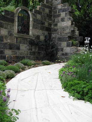 One garden which has stayed with me is Chorley Council's Evader's Garden in the Artisan category. It had a couple of arresting elements: the ethereal sculpture, made of 3mm thick steel plates, glued together with 3mm gaps, and the path.
