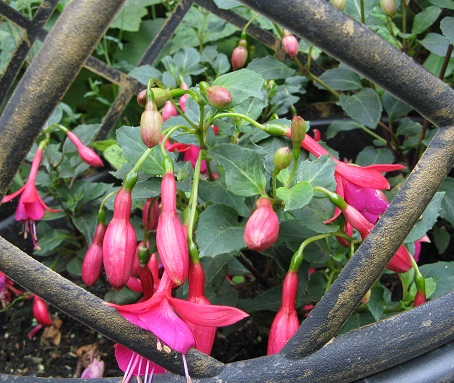 Climbing Fuchsia 'Pink Fizz' from Thompson and Morgan was another introduction to the garden this year. It is, they promise, the next generation of climbing fuchsias and a huge improvement over 'Lady Boothby'. Also noteworthy, the dangling pink blooms are produced along the entire length of the stem and not just on the tips.