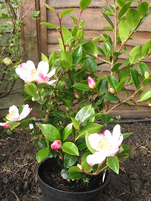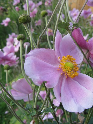 It never really did particularly well in its original position, on a north-facing fence that grew progressively shadier over the years, so I took a cutting (rooted in a jar of water) about four years ago and planted the result in full sun, weaving it into a flimsy support. (The rose was what kept it upright during the high winds last winter.)