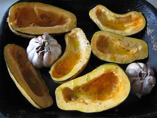Please note that 'little'. The description that comes with Honey Boat is that each squash will feed two. Mine each offered something rather skimpy for one. However, they did taste lovely. They had sweet, dense flesh - just what you hope for. They have large seed cavities, which mean they'd be good stuffers, but I just cut them in half and roasted them with olive oil and garlic. Very popular at the Sunday lunch table, they were, even if there wasn't a huge amount to go round.