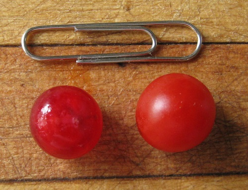 My Honey Boat squash actually came up with loads of female flowers, but nearly all of them dropped off. When I gave a rundown of my experience with the Red and Yellow Currant Tomato plants from Dobies, I was despairing of seeing any squash at all. But - hurrah! - this was too pessimistic. Full harvest from one plant (the other never came to much - my fault, as previously reported) = two delightful little squash.