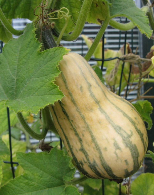 I grew the squash in a large planter, up a fence-wire support. This means you can see what's going on more easily, dead leaves are easier to pick off, and slugs and snails are less of a threat. Possibly it results in a smaller harvest but, given my track record, this for me is pretty much as good as it gets, so I'd say not. Feeding-wise, I'd added Thompson and Morgan's Incredicrop granules. Dobies' website recommends a mostly manure-filled hole around two feet square and 18-24 inches deep, so I really should think of extra feeding next time.