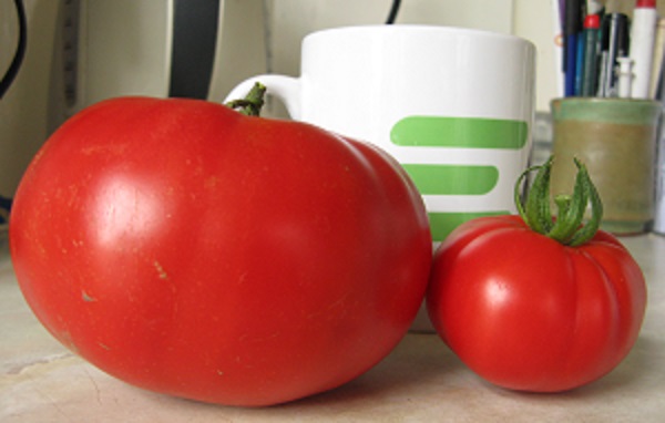 A redcurrant and a Red Currant. Quite a few of the tomatoes are smaller than this one.